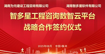 8月14日,湖南為元建設工程咨詢有限公司與湖南智多星軟件有限公司就工程咨詢數智云平臺達成戰略合作并成功舉辦簽約儀式?!肮こ套稍償抵窃破脚_”是本次合作的...
